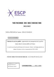 Valoriser le service public, opportunités du management de la performance dans le secteur public en France : le cas du reporting de performance de la mission "Justice" du budget général, appliqué à la justice civile et commerciale de 2012 à 2022 / Charles Delie