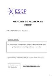 Les conséquences de la transformation digitale de la filière audiovisuelle sur les pratiques d'écriture scénaristique en France / Claire Plé