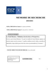 Le Social business : Définition, état des lieux et perspectives / Charlotte LIEFFRING ; Félicie DUVAL-ARNOULD