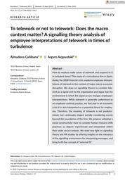 To telework or not to telework : Does the macro context matter? A signalling theory analysis of employee interpretations of telework in times of turbulence / Al...