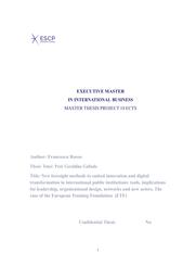 New foresight methods to embed innovation and digital transformation in international public institutions : tools, implications for leadership, organizational design, networks and new actors. The case of the European Training Foundation (ETF) / Francesca Rosso