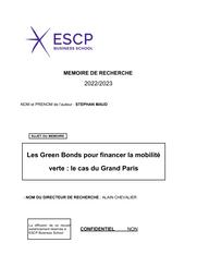 " Ce mémoire étudie l’opportunité que constitue les obligations vertes, en tant qu’innovation financière à impact positif sur l’environnement, pour accélérer le financement de projets d’infrastructures de mobilité bas carbone.
