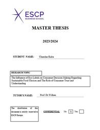 The Influence of Eco-Labels on Consumer Decision-Making Regarding Sustainable Food Choices and the Role of Consumer Trust and Understanding / Chandan Kalra