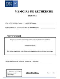 Les fusions acquisitions et les alliances stratégiques sur le marché pharmaceutique / Naoufel LADDEM ; Eléonore MARCHAT