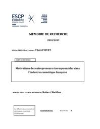 Motivations des entrepreneurs écoresponsables dans l'industrie cosmétique française / Thais Fievet
