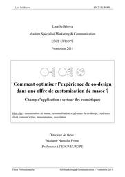 Comment optimiser lexpérience de co-design dans une offre de customisation de masse ? : secteur des cosmétiques / Lara Selikhova