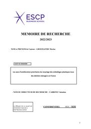 "L’objectif de cette étude est de déterminer les axes d’amélioration que la filière du recyclage des emballages plastiques issus d...